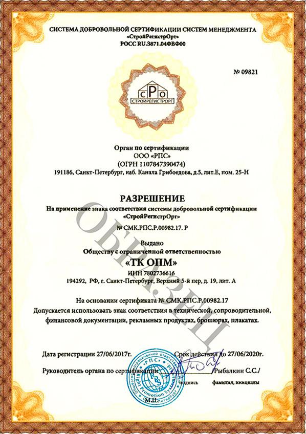 Сертификат выданный органом по сертификации "СтройРегистрОрг" - при онлайн заказе стоит 29 900 рублей. Сертификат действует 3 года. Сертификат от "СтройРегистрОрг" выдается с шаблонной документации. Шаблонная документация нужна для быстрого "старта" при участии в тендерах. Некоторые страницы из шаблонной документации - запрашивают тендерные комитеты.