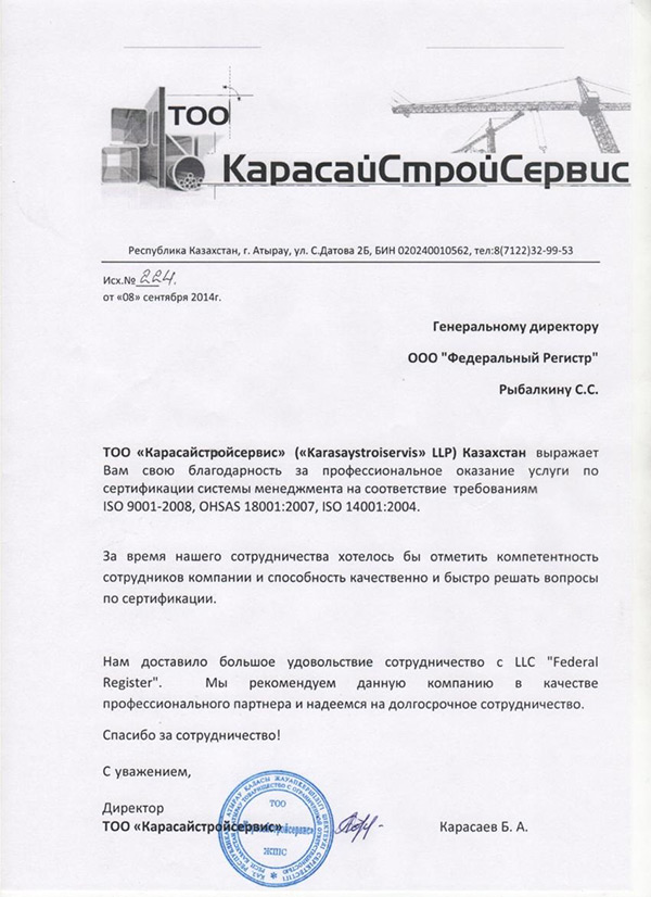 Мы выдаем только легитимный сертификат, который официально зарегестрирован в Реестре!